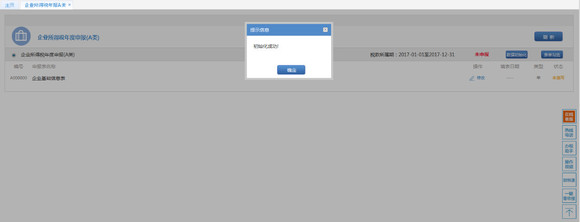 点击“数据初始化”,系统自动获取相关报表的税务登记信息、相关表单上年结转数等数据,系统显示“数据初始化成功”,点击“确定”,完成数据初始化。