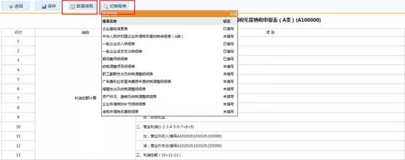 *三步:填写A101010表至A104000表后,返回主表A100000,点击“读取数据”,填写其他可以填报的数据并核对后保存。